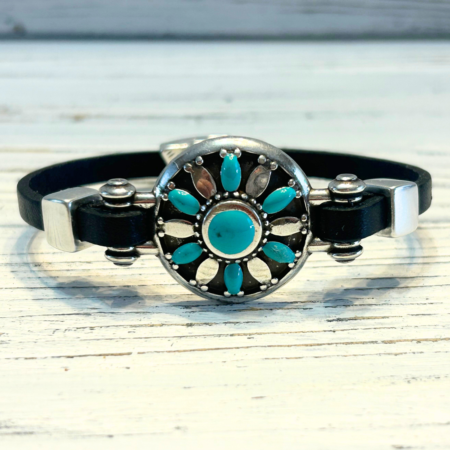 This bracelet is created with one single strand of the 5mm cowhide flat leather and has a magnetic clasp that makes it super easy for everyone to manage. All metals are guaranteed hypoallergenic and are made of a combination of zinc and sterling silver, with a few pieces made of genuine pewter.